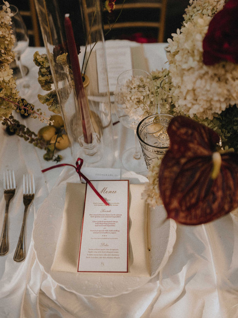 At Arrow Park, nature’s calm became the canvas for a red-and-white floral story — a dialogue between fire and light. The florals were abundant yet composed: deep red roses, ranunculus, and dahlias layered with ivory garden roses, lisianthus, and delicate waxflowers. The design moved between contrast and harmony — bold tones grounding themselves in soft petals and flowing greens. Along the lakeside and beneath the stone archways, the arrangements mirrored the park’s rhythm of reflection and stillness. Each petal carried both energy and grace, turning the space into a quiet celebration of unity — two colors, two souls, meeting in bloom.
