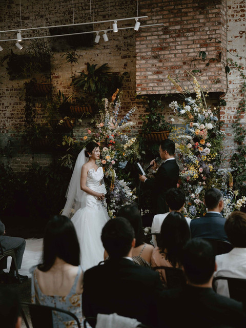 At the Brooklyn Winery , Floraland brings every detail exudes elegance and romance, with the floral design being a standout feature. The winery's natural surroundings harmonize beautifully with the thoughtfully selected blooms, creating a dreamy atmosphere. From the floral arch to the table centerpieces and the intricately designed bridal bouquet, each arrangement reflects the designer's keen attention to detail. Every flower, along with the choice of colors, adds to the overall charm, making the wedding a perfect blend of nature and sophistication.