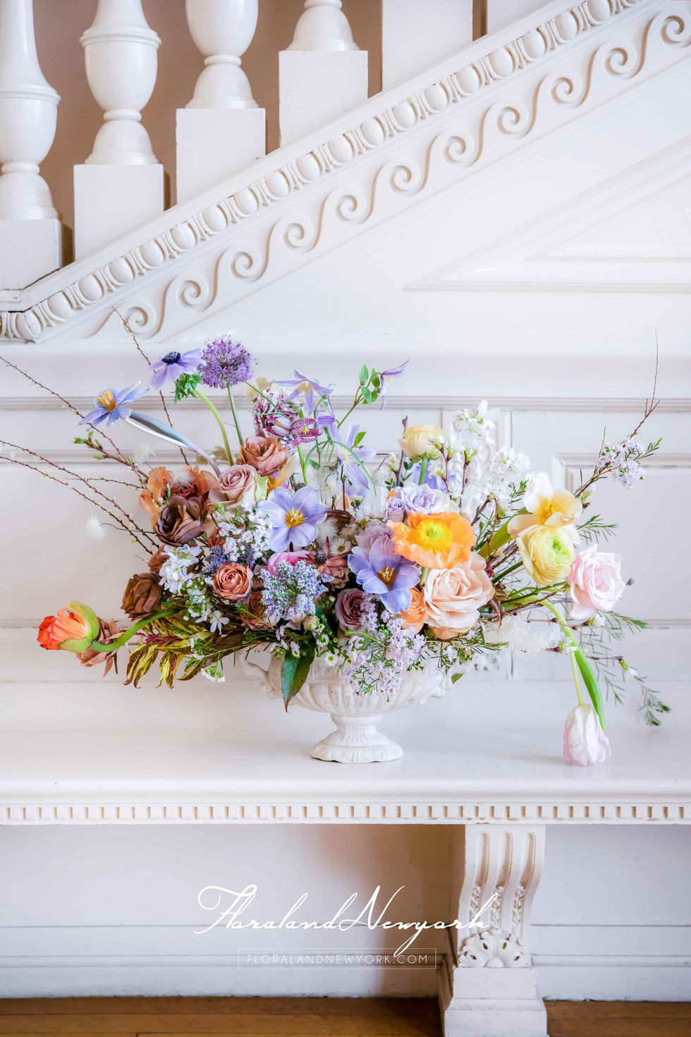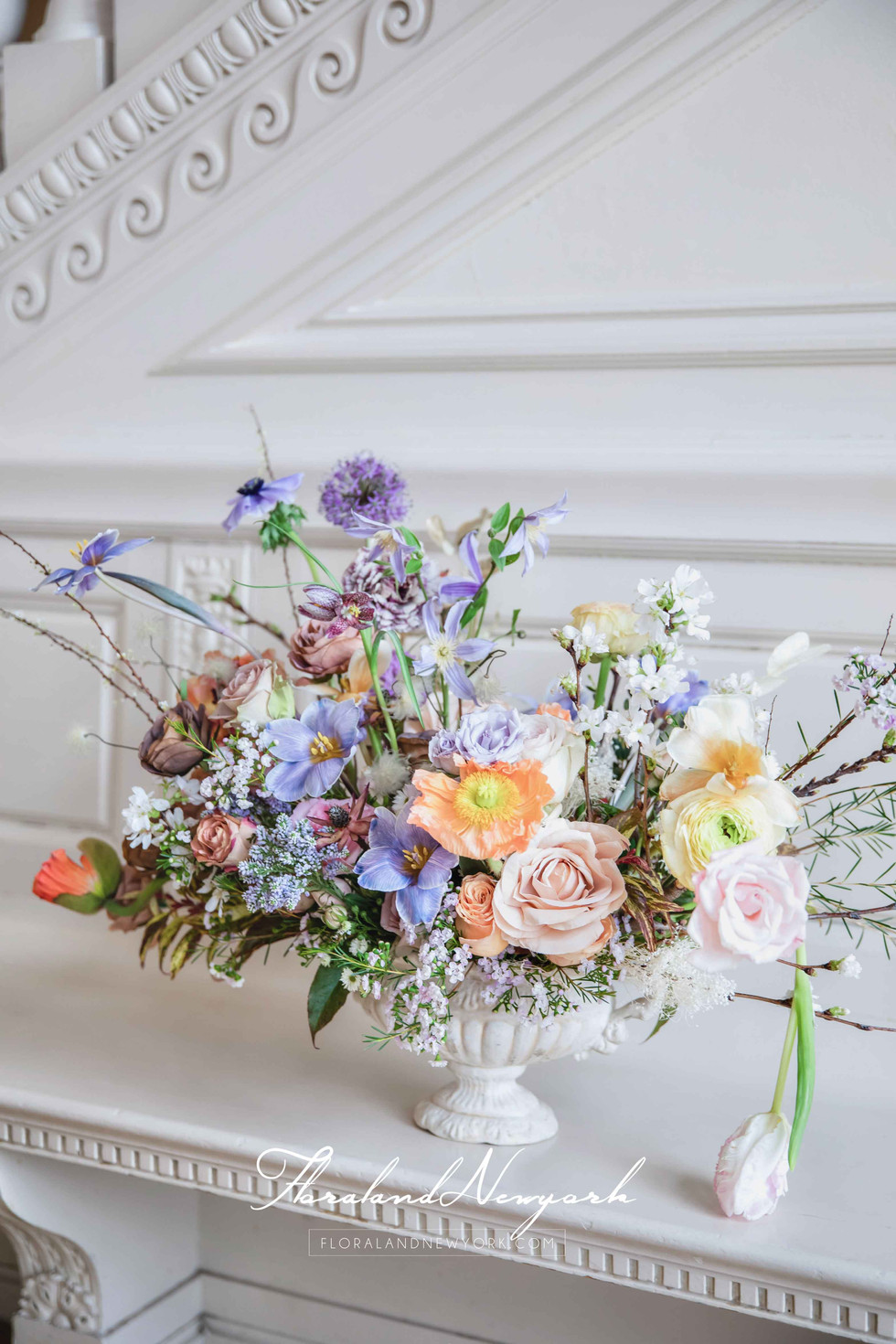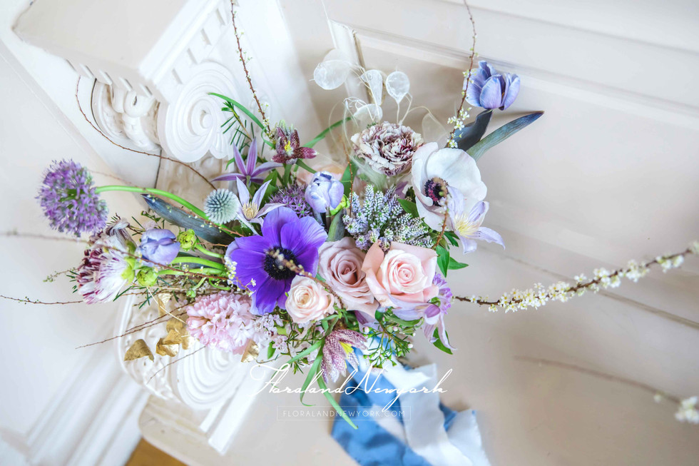 Yesterday, the bride at the Philadelphia wedding loved the lavender color palette floral arrangement. Our florist Bruce used noble flowers materials, including anemones, fritillaries, white cherry blossoms, snow willows, poppies, clematis, etc., to design exquisite bouquets and floral table arrangements.