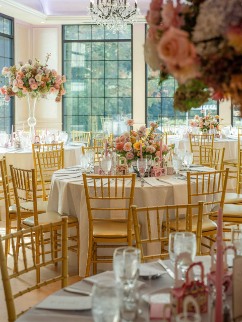 Step into a blossoming pink paradise at the Swan Club, where Floraland’s stunning floral design set the stage for an unforgettable wedding. Nestled in New York, the venue glowed with a vibrant pink theme, symbolizing joy and optimism. Soft blush roses and bold pink peonies were thoughtfully arranged to infuse warmth and elegance into the celebration.