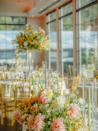 The choice of yellow, a color symbolizing joy and optimism, created a radiant atmosphere that perfectly complemented the couple's special day. From delicate daffodils to bold sunflowers, each bloom was thoughtfully selected and arranged to enhance the venue’s charm. The lush, yellow floral arrangements transformed the Swan Club into a picturesque setting, where every detail reflected the beauty of spring and the excitement of a new beginning.