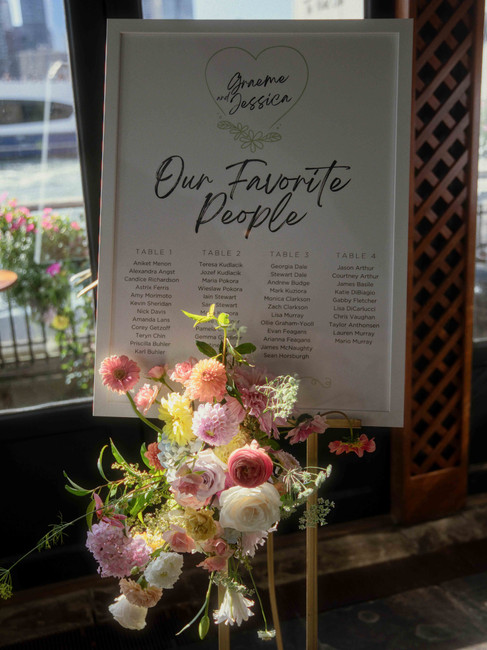 With the iconic Brooklyn Bridge in view, the florals were designed to feel effortless and airy—like a breeze off the East River. Gentle movement, asymmetry, and seasonal textures brought a natural elegance to both the ceremony and reception. This floral story was about light, landscape, and the quiet luxury of summer in the city.