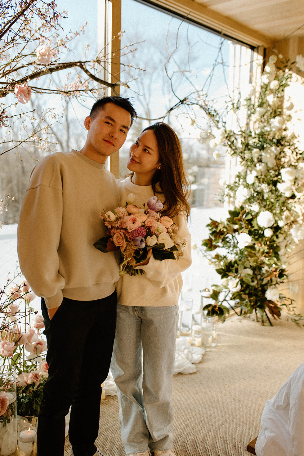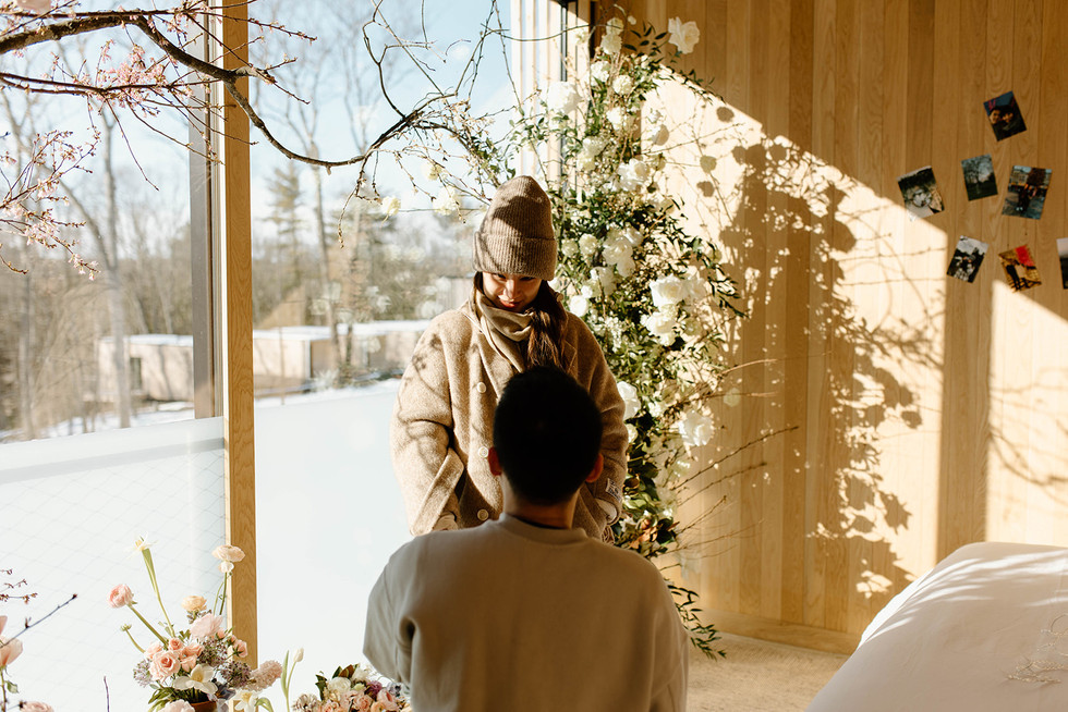 The boy and Floraland staff prepared a surprise marriage proposal in an ordinary weekend getaway trip in a cozy log cabin at the uptown New York.